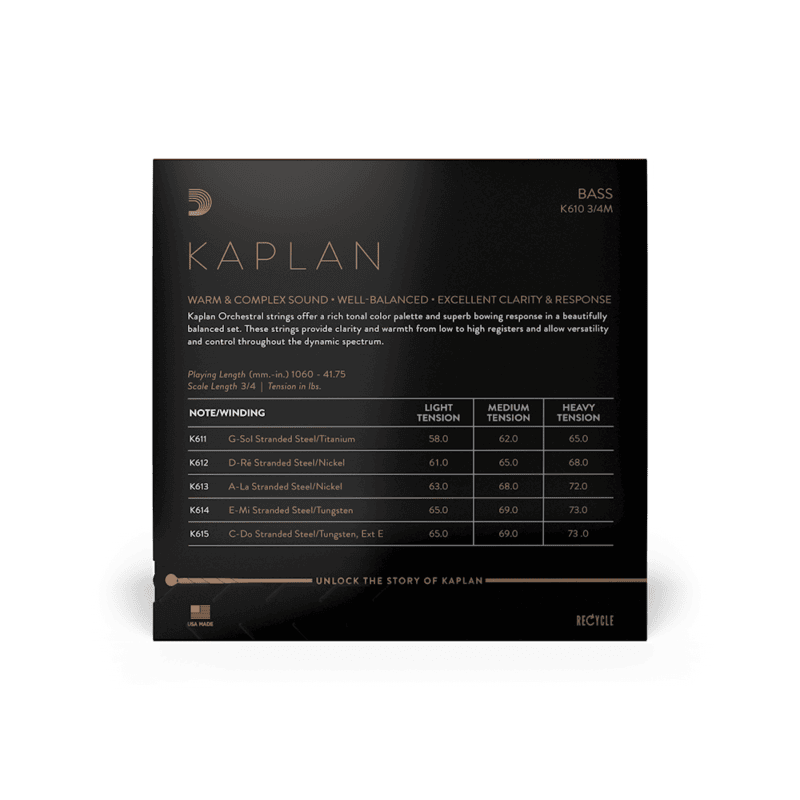 D'Addario Kaplan Double Bass String Set 3/4, Medium