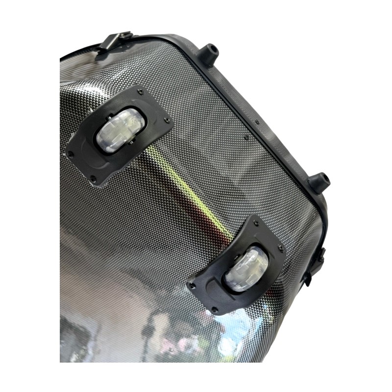 Designed for the advanced student, this 3/4-size shaped cello case combines professional-grade quality with a stylish carbon fibre look finish. Its hard composite shell offers superior protection, shielding your instrument from knocks, scratches, and the rigours of performance and travel. Lightweight yet incredibly durable, this case is built for convenience with sturdy back straps for hands-free carrying, wheels for pulling, ergonomic handles, and a secure combination lock for added peace of mind. Inside, the padded interior suspends your cello snugly, with space for up to two bows. Whether heading to lessons, rehearsals, or performances, this case offers the perfect blend of practicality and elegance. Support your musical journey with a case that reflects your dedication, providing the reliability and style every hard-working musician deserves. You will be the envy of your fellow-musicians!