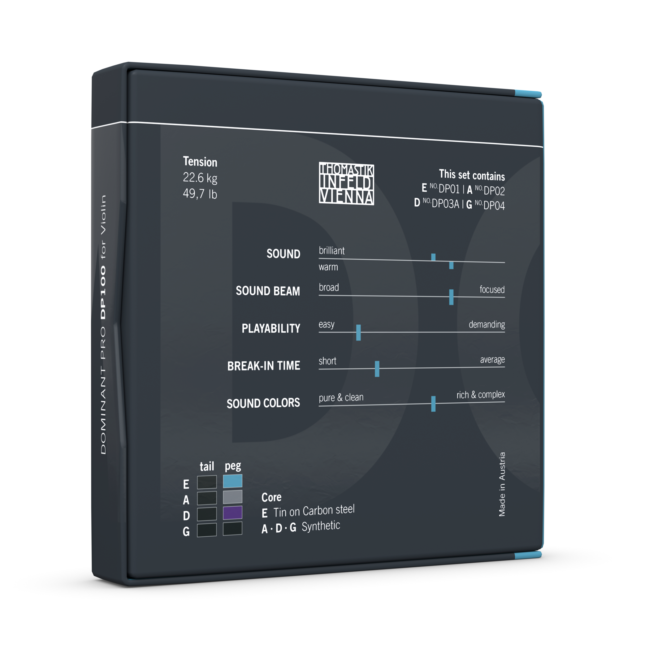 Dominant Pro violin strings, made by Thomastik-Infeld, are an advanced version of the popular Dominant series, offering enhanced tonal richness and projection. Featuring a synthetic core, these strings combine the warmth of gut with the stability and durability of synthetic materials, making them ideal for both professional musicians and advanced students. Dominant Pro strings deliver a rich, full-bodied sound with exceptional clarity, and their quick response allows for precise articulation and dynamic control. Designed for greater longevity and resilience to environmental changes, they are known for their consistent performance, making them a reliable choice for soloists and chamber musicians alike.